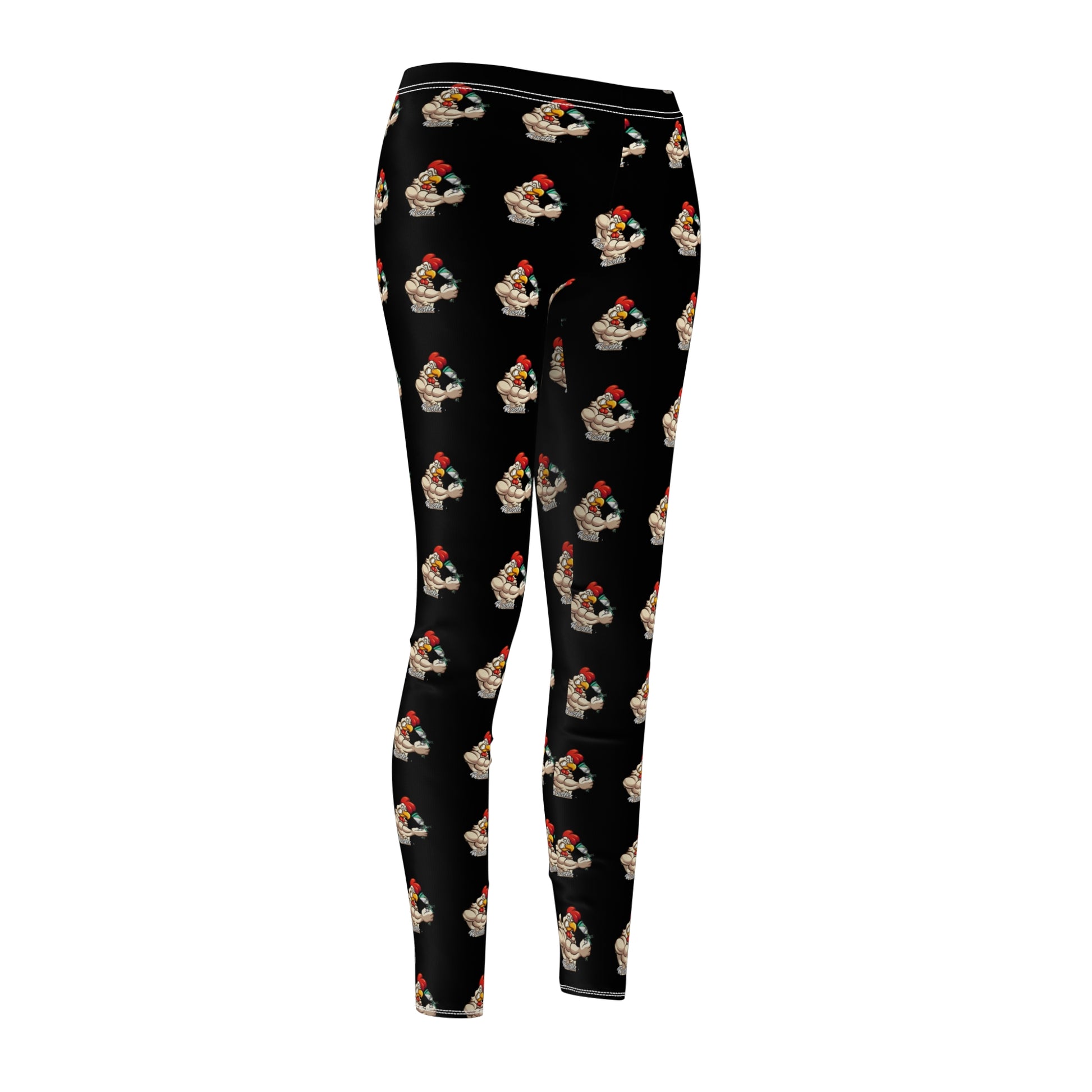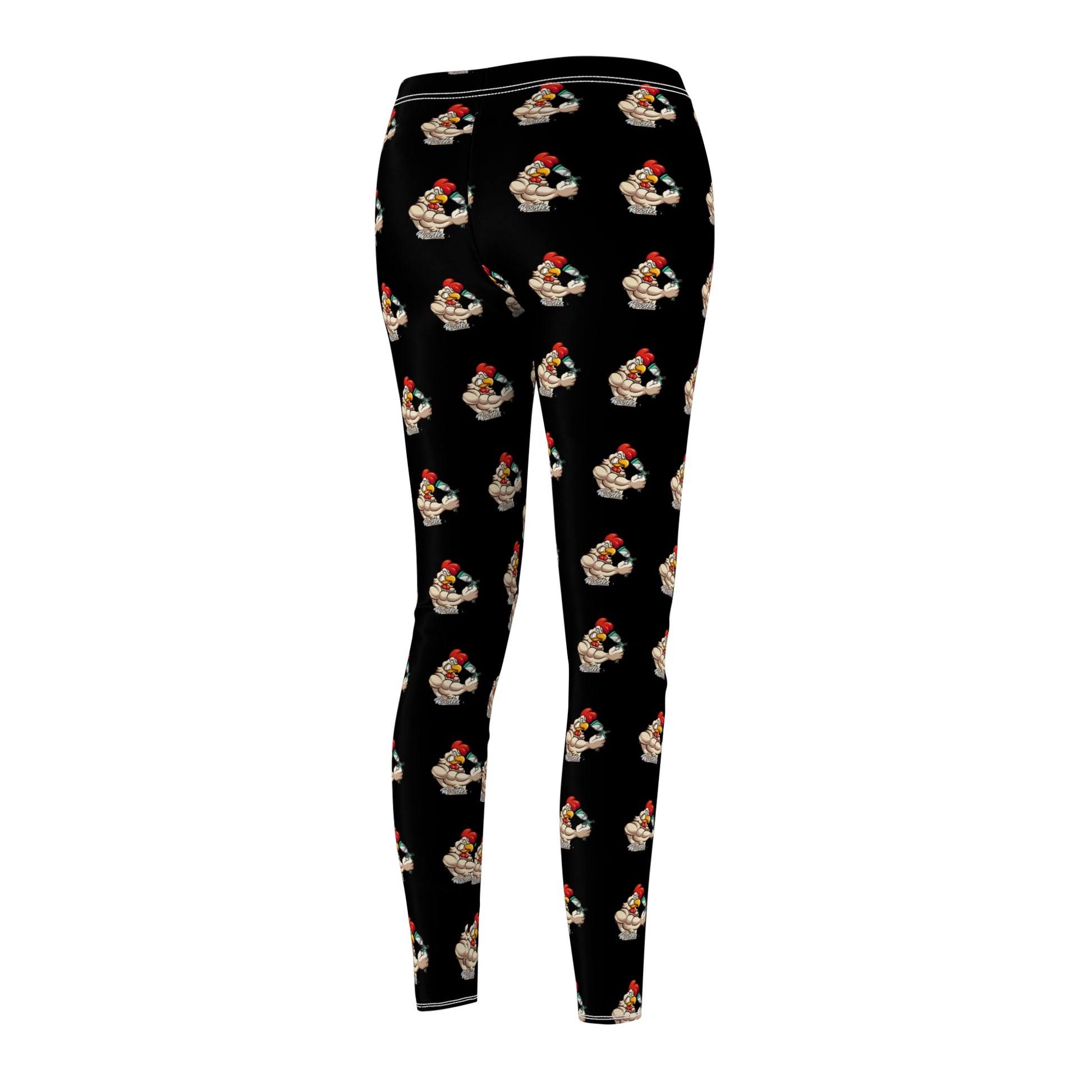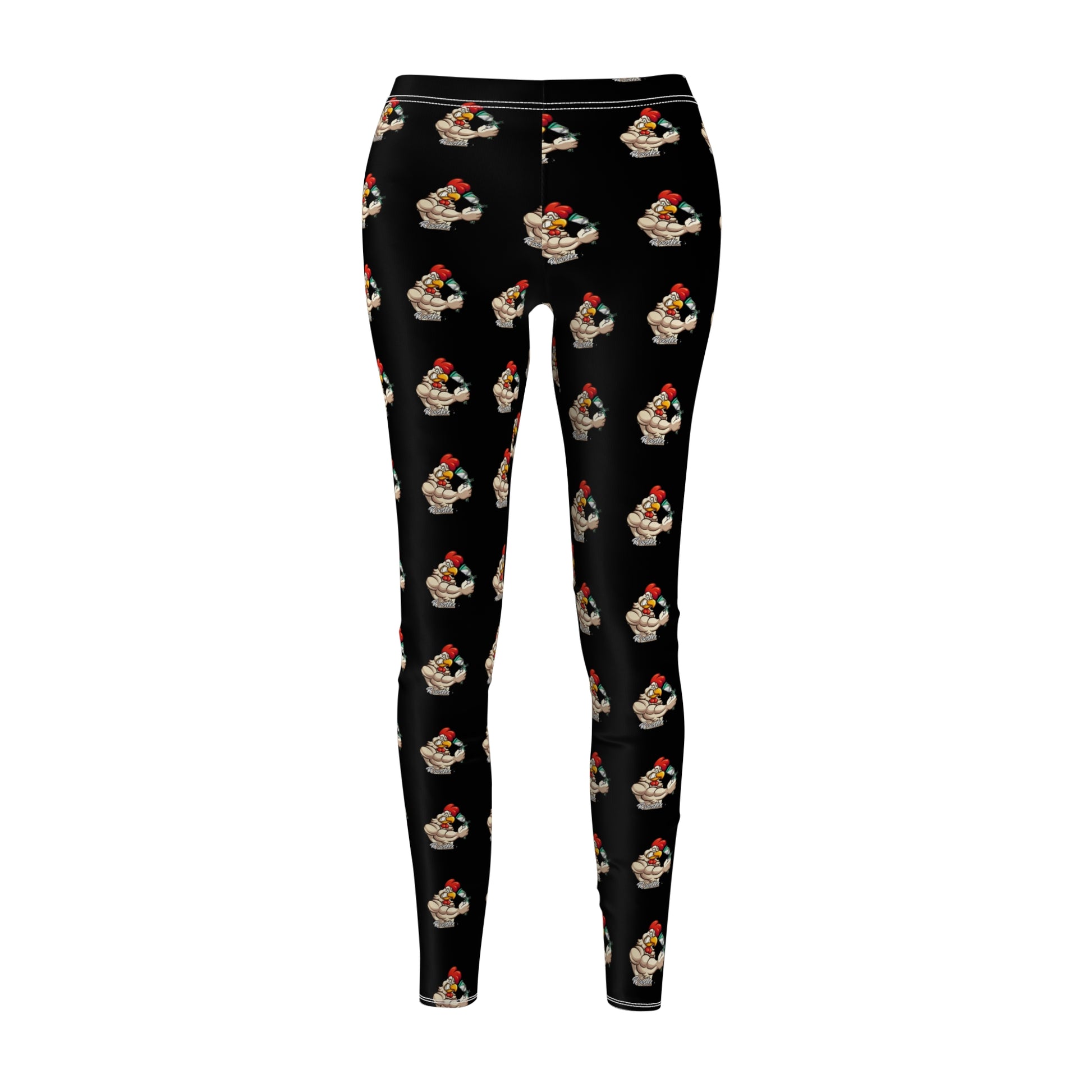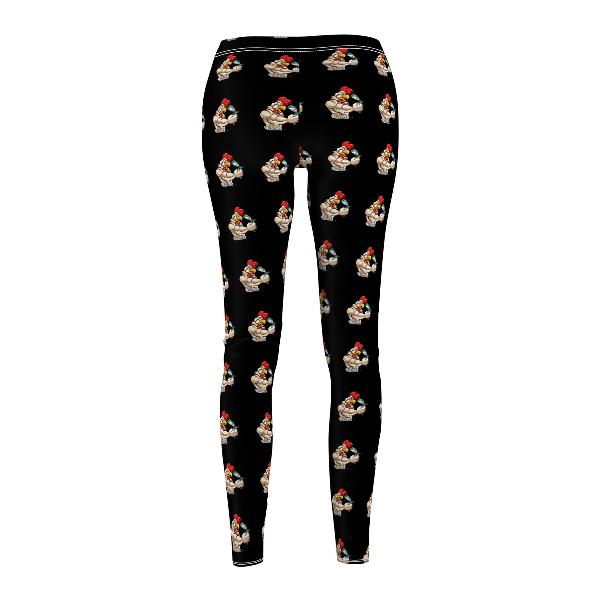 These leggings feature the Rooster's Logo pattern on a black background. Perfect for those who love unique and eye-catching designs, these leggings are great for casual wear and can be styled for a variety of occasions. Ideal for women who enjoy standing out and making a fashion statement. Relevant for everyday wear, casual outings, and unique fashion looks.