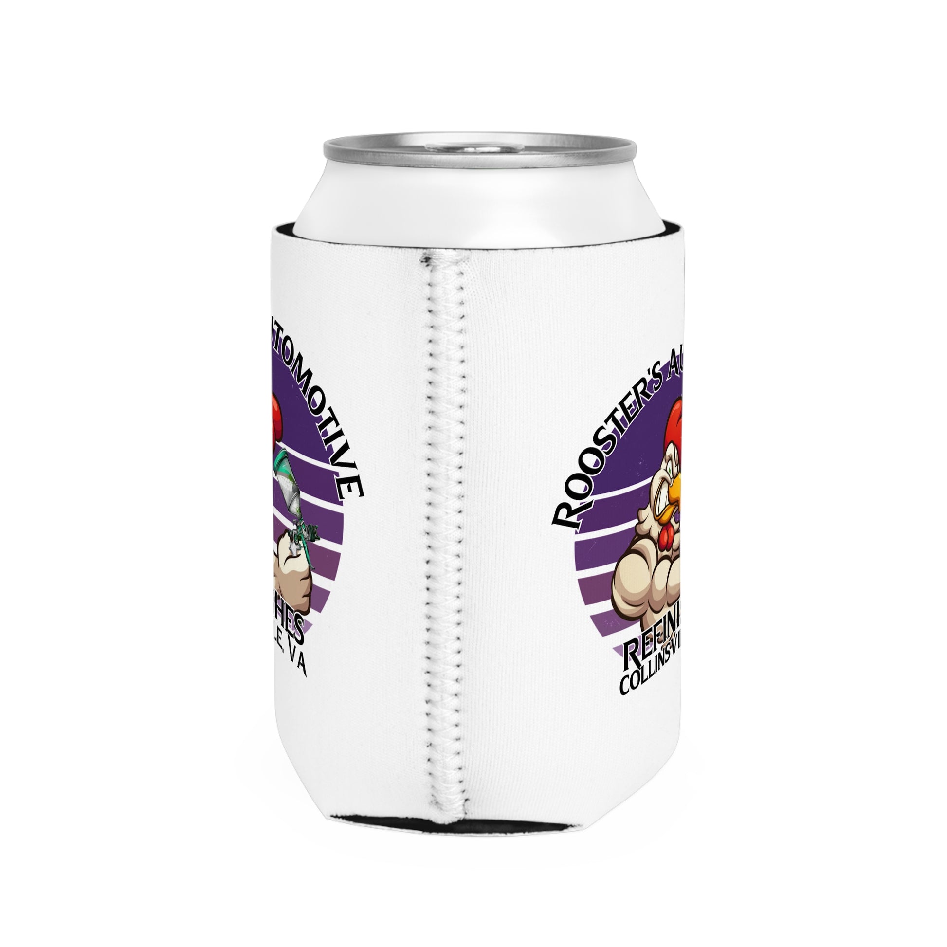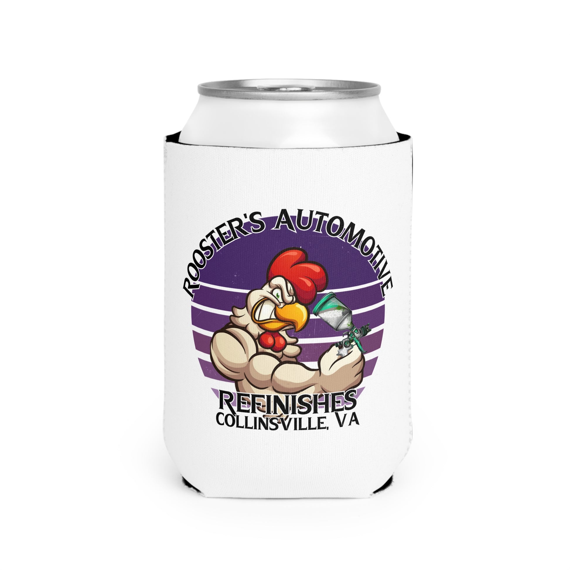 Keep your drink cool and your style cooler with the Rooster's Can Cooler! Featuring our bold rooster logo in striking purple, this non-slip, durable neoprene sleeve is perfect for kicking back and enjoying your favorite 12oz beer or soda without any rush. Whether you're at the shop, the BBQ, or tailgating, this can cooler fits your vibe. Collapsible for easy storage and ready to keep your beverage chilled, it's the ideal party favor or gift for any gearhead or Rooster's fan.