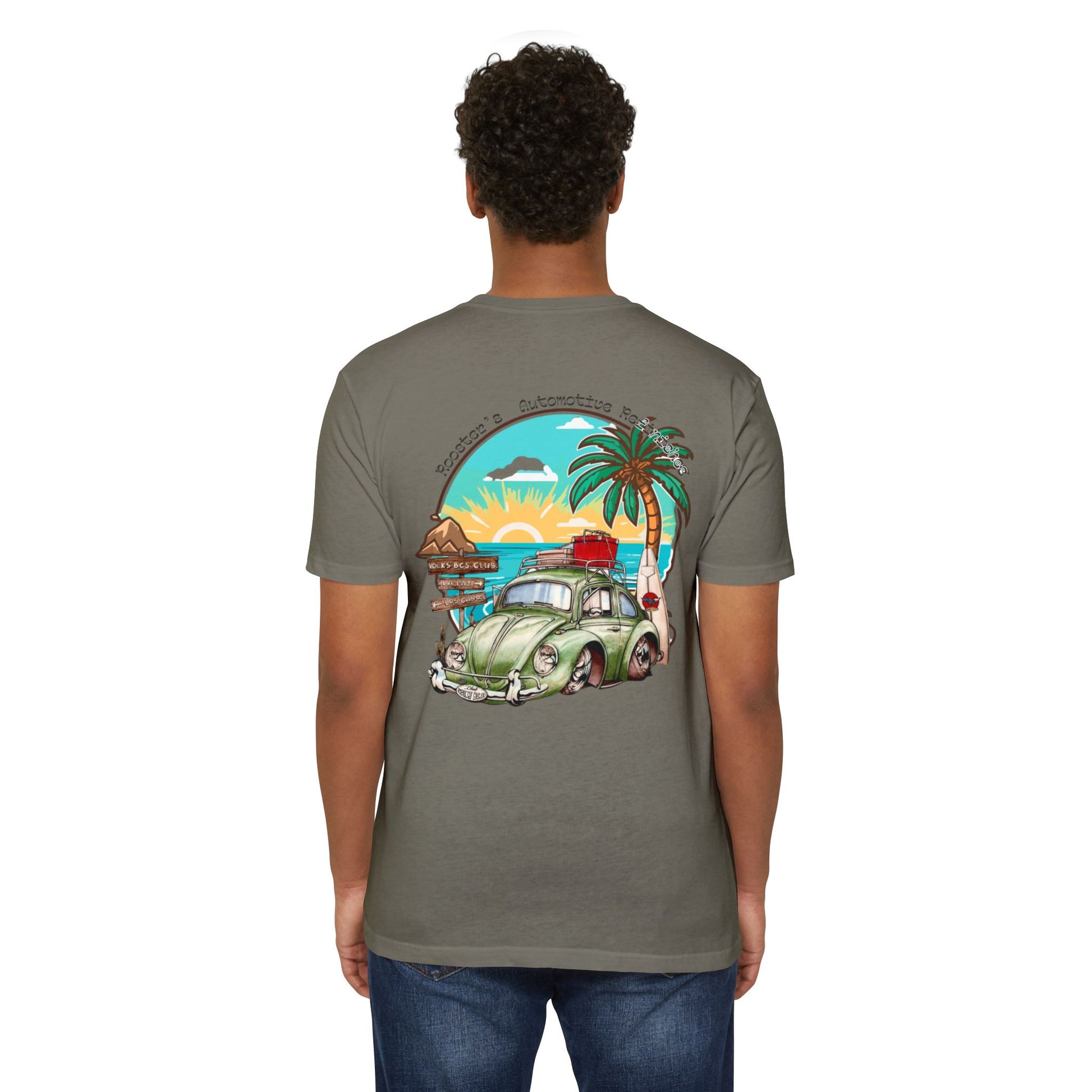 Check out our latest must-have tee! Featuring a classic Volkswagen Bug design on the back, this shirt is perfect for any car enthusiast. With the same eye-catching graphic on the front pocket, it’s a subtle yet stylish way to rep your love for the classics. Whether you’re at the shop or out cruising, let everyone know you stand for quality with Rooster's Automotive Refinishes. Comfortable, durable, and full of personality—get yours today and wear the Rooster's name with pride!