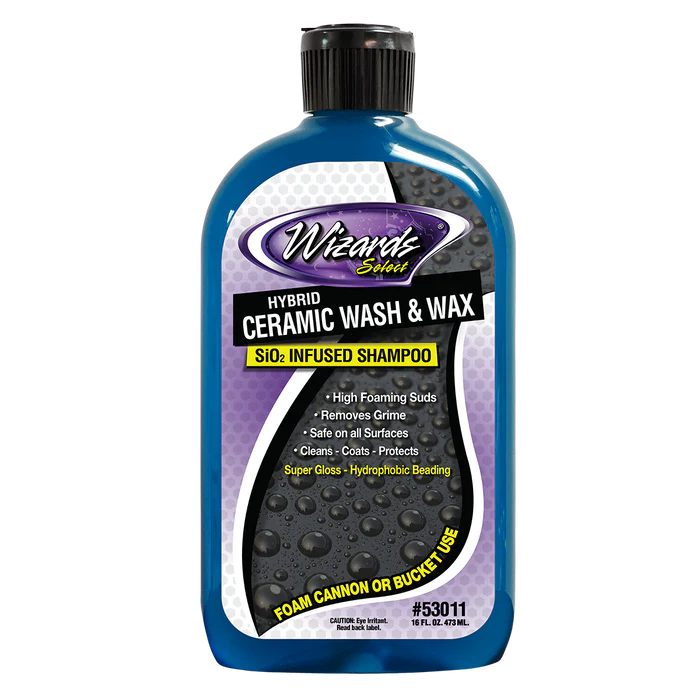 Wizards® Ceramic Wash & Wax is a high-performance, SiO₂-infused shampoo designed to clean, shine, and protect in one simple step. Safe for all surfaces and ideal for both ceramic-coated and non-coated vehicles.