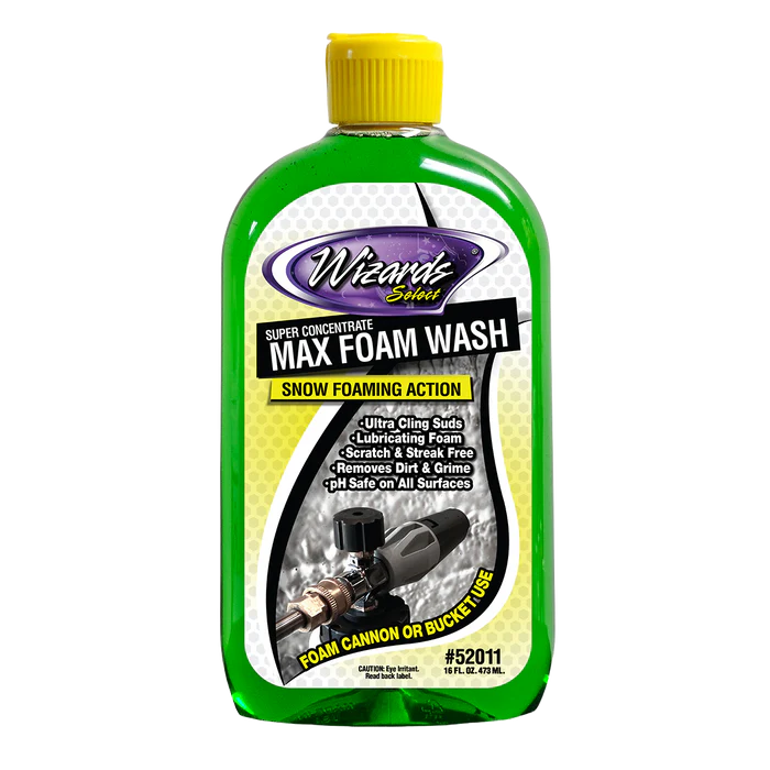 Wizards® Max Foam Wash delivers a powerful snow foaming wash that clings, lubricates, and lifts dirt safely from your vehicle’s surface—without stripping wax, sealant, or ceramic coatings.